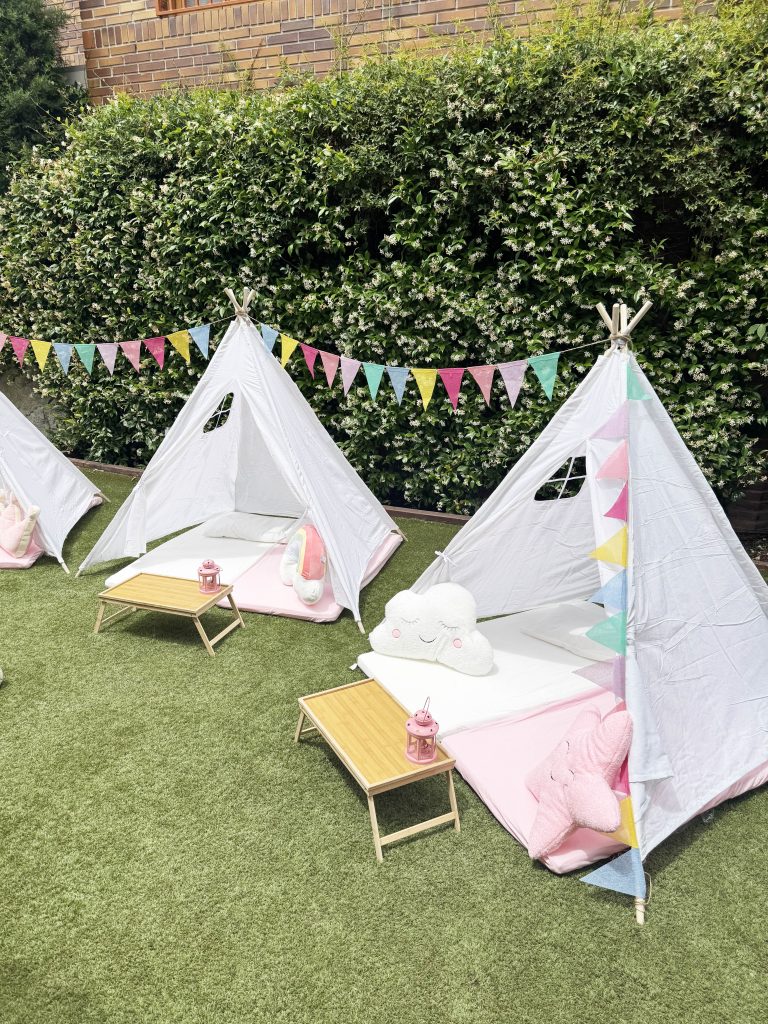 El pasado sábado celebramos la fiesta de cumpleaños de Cristina, 11 años, que bien se merecían una glamping party…